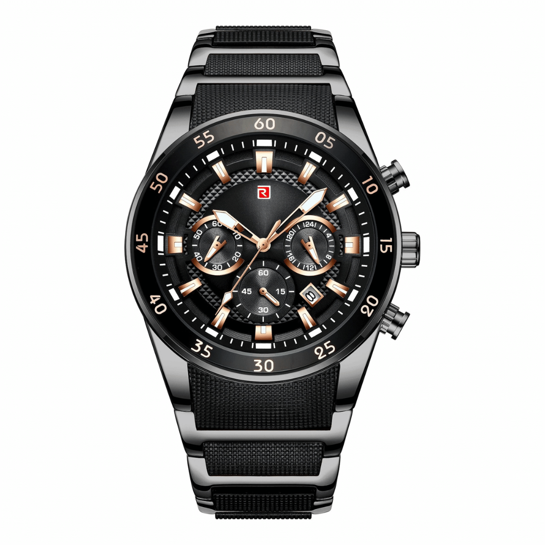 The ChronoSteel Men’s Watch is a bold sport-luxury timepiece designed for men who value precision, durability, and modern style. Powered by a reliable quartz movement, it delivers accurate timekeeping along with practical features including a chronograph, calendar, and 24-hour display.