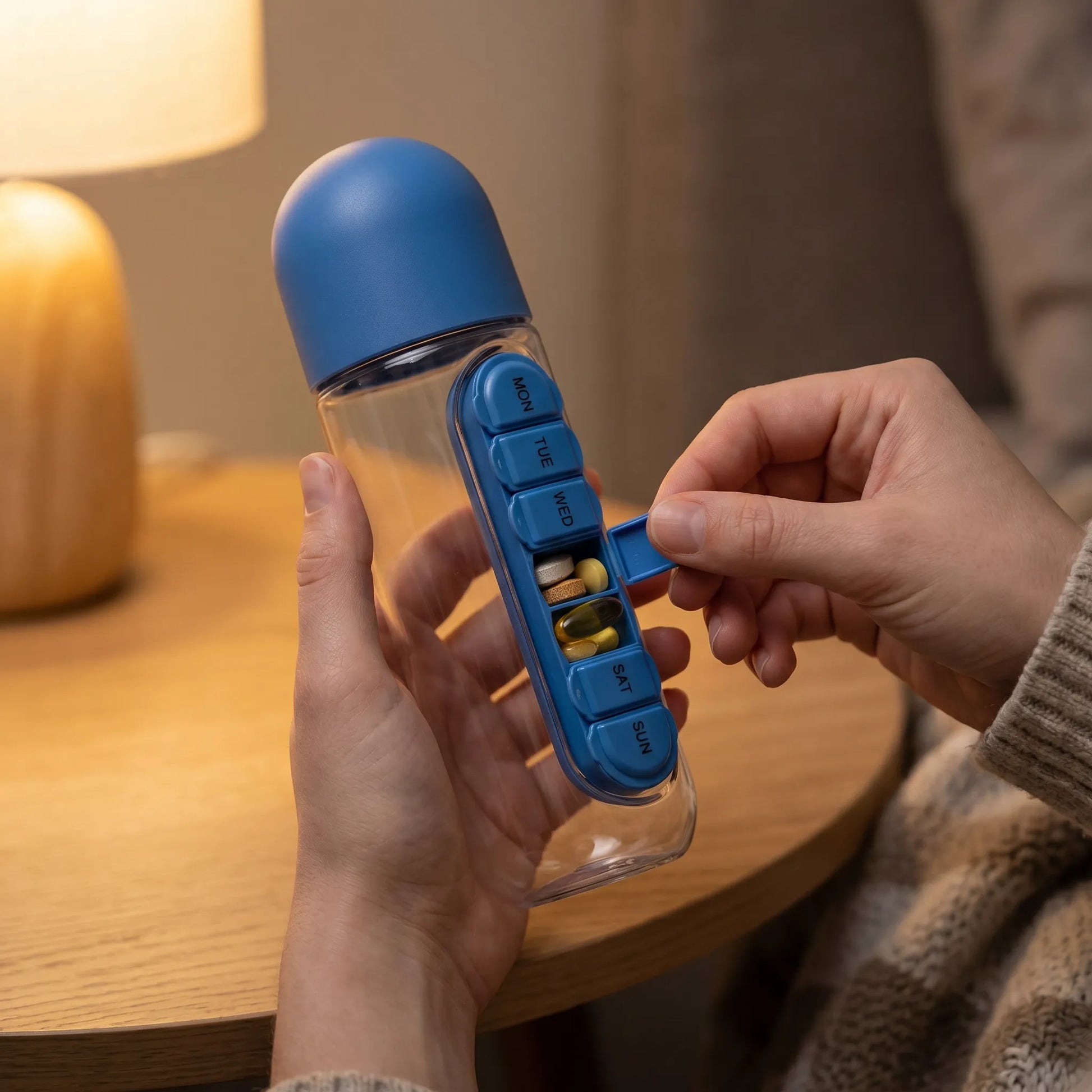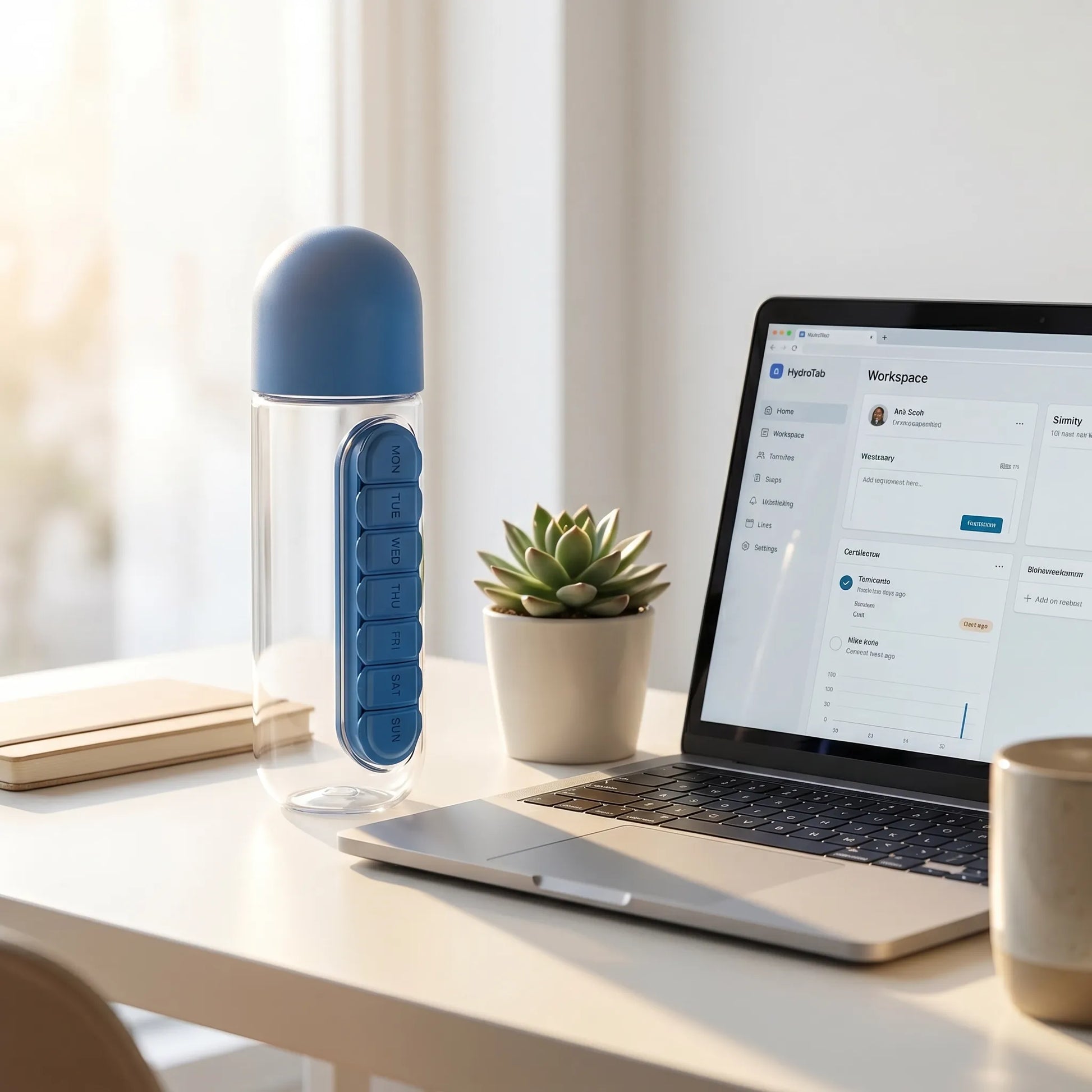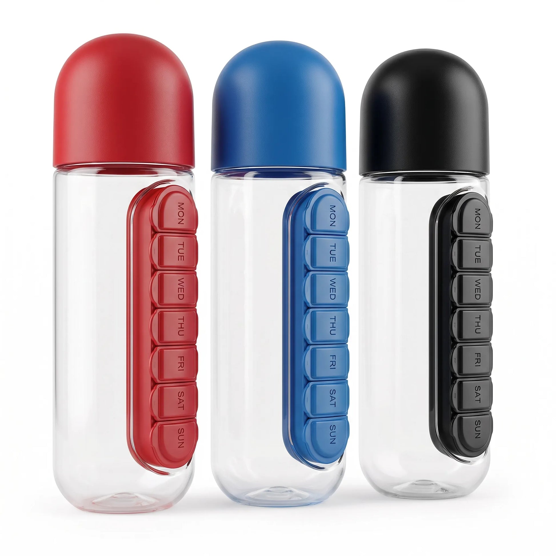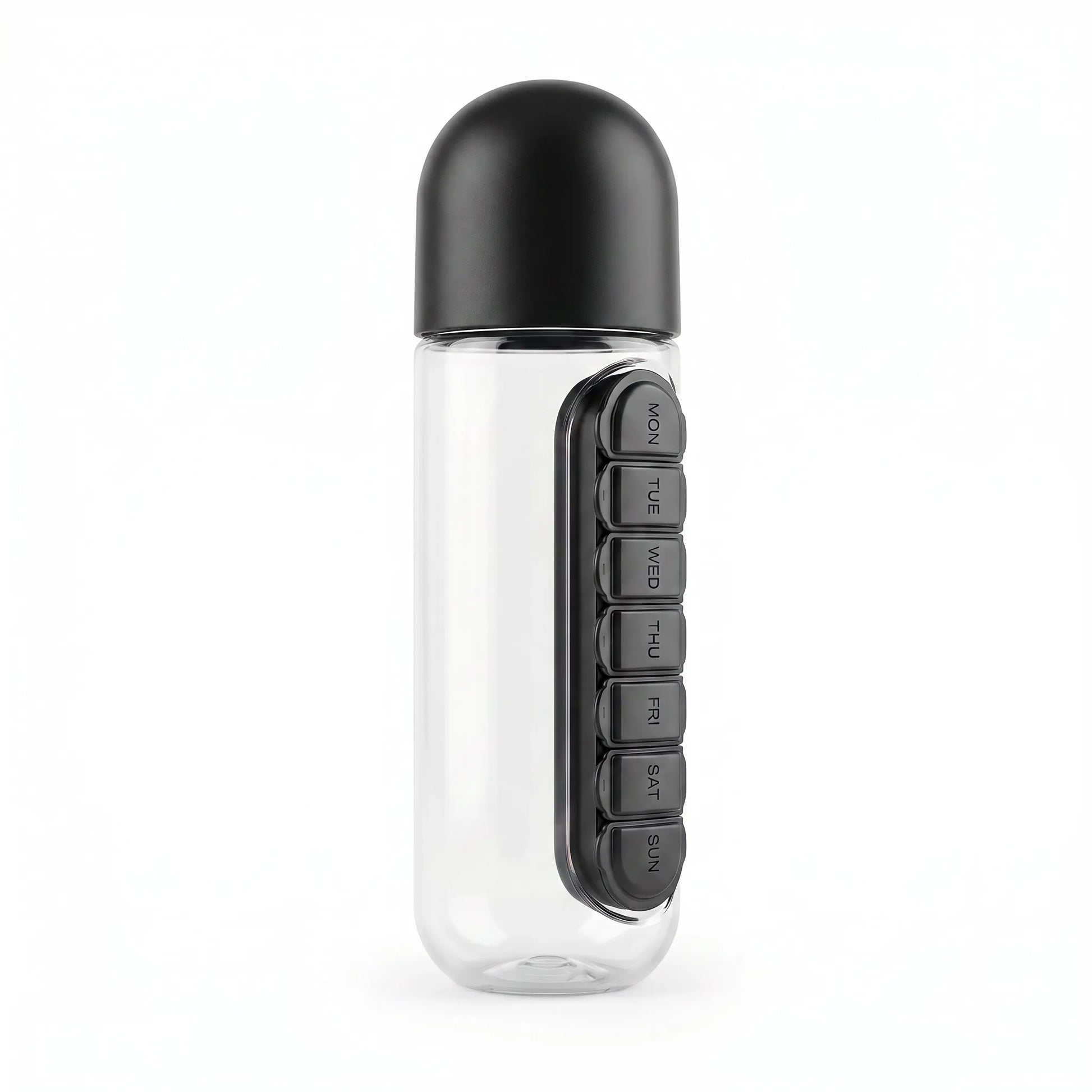 Maintain your daily wellness routine with ease and precision. The HydraTab 2-in-1 Bottle is engineered to provide a practical solution for hydration and supplement management, combining a high-quality water bottle with a secure, integrated pill organizer.